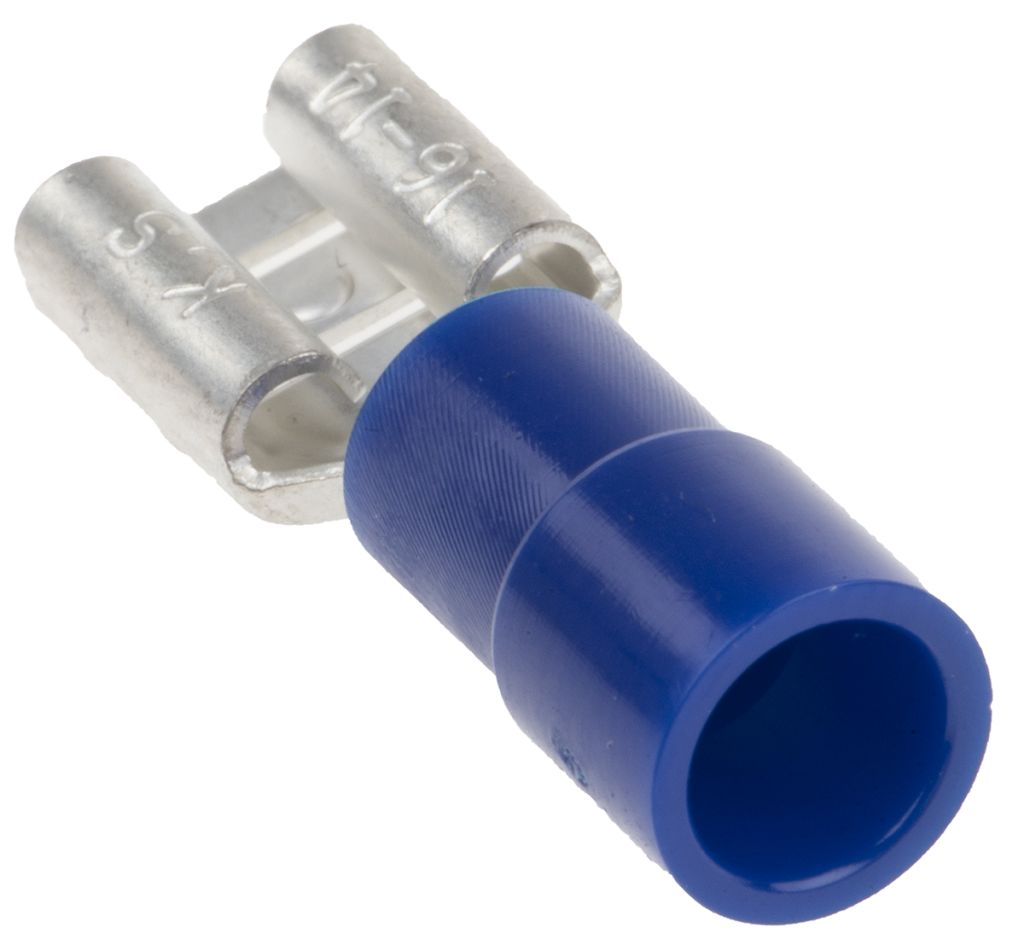 | Product description | RS PRO Blue Insulated Female Spade Connector, Receptacle, 6.35 x 0.8mm Tab Size, 1.5mm² to 2.5mm² |