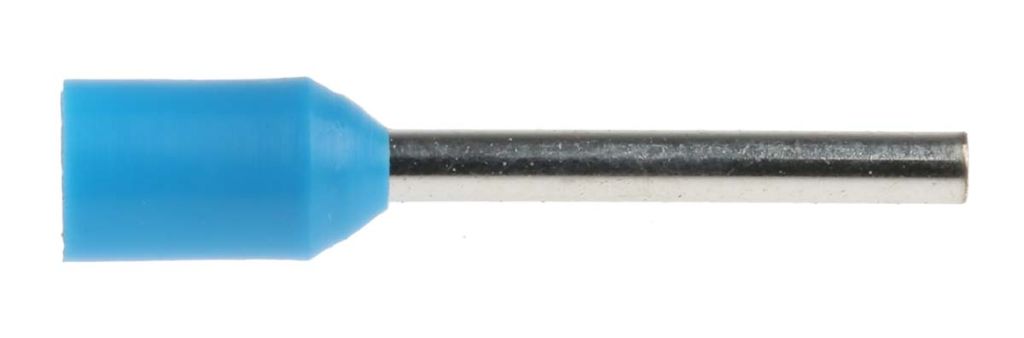 A bootlace ferrule is a metal tube or ferrule with a moulded colour coded insulating collar made from nylon. The ferrule is slipped over the end of a multi-stranded wire, crimped and then inserted into a screw or spring clamp connection.