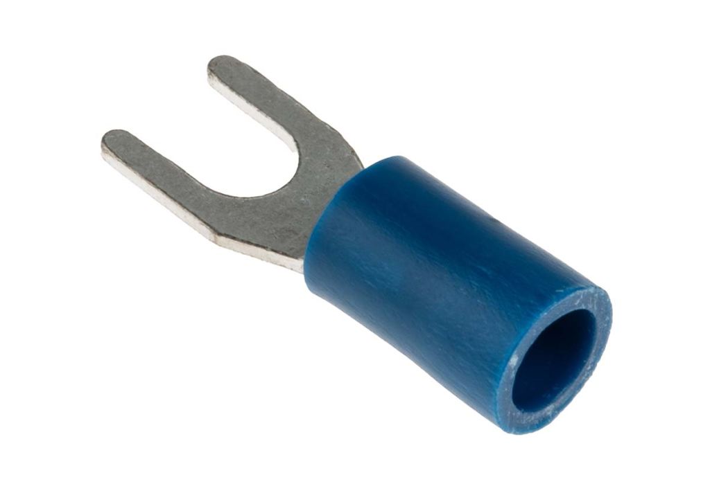 RS PRO Insulated Crimp Spade Connector, 1.5mm² to 2.5mm², 16AWG to 14AWG, M4 Stud Size Vinyl, Blue