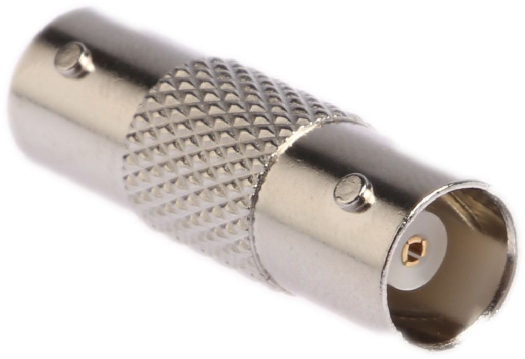 50 Ohm ZDC/BNC RF coaxial adapter with a jack-jack (f-f) configuration and bayonet fitting. This 50 Ohm RF coax BNC jack to BNC jack adapter has a nickel plated zinc body and gold plated male centre contact.