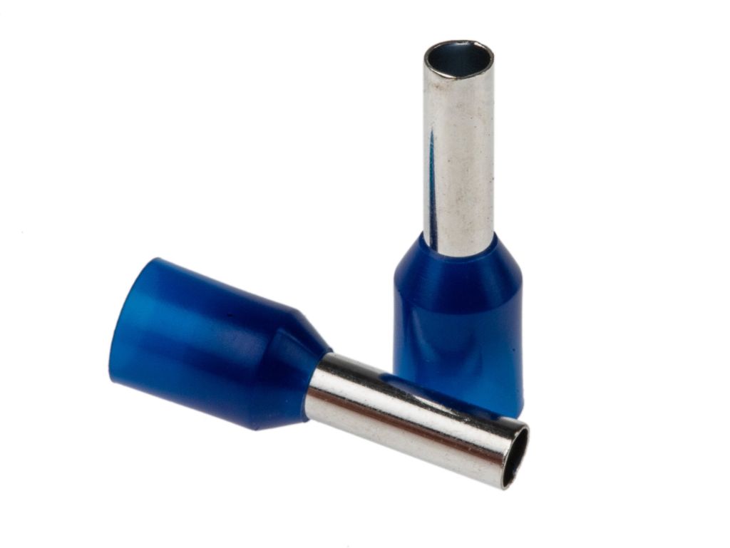 A bootlace ferrule is a metal tube or ferrule with a moulded colour coded insulating collar made from plastic. The ferrule is slipped over the end of a multi-stranded wire or cable, crimped and then inserted into a screw or spring clamp connection.