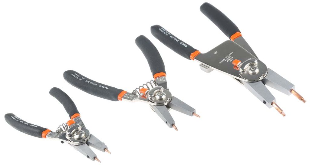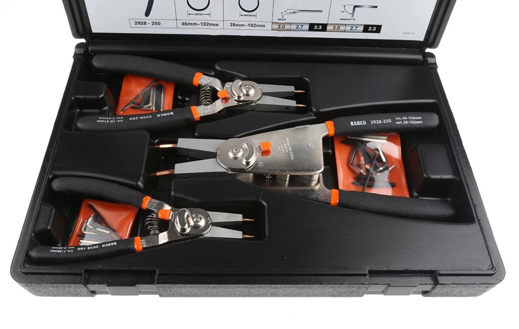 This set brings together Bahco’s range of professional adjustable circlip pliers that can be used internally and externally. Designed for precision and built to last they benefit from interchangeable tips which can be easily adjusted to work on internal or external clips as required.