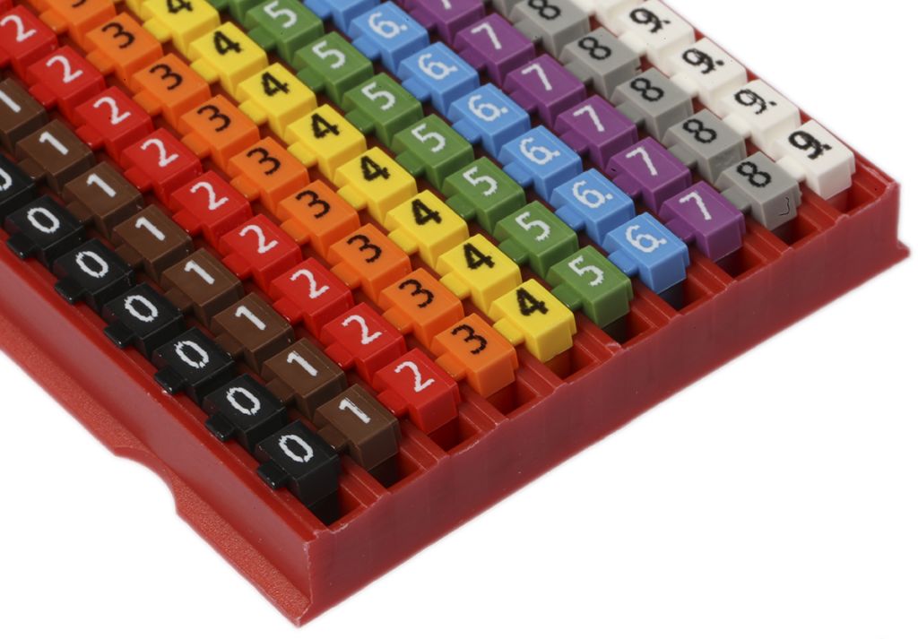 HellermannTyton WIC1 Snap On Cable Markers, Pre-printed “0 → 9”, assorted colours, 2 → 2.8mm Dia. Range