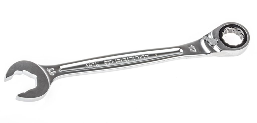 Introducing the 2 in 1 combination spanner from Facom’s 467R range, designed and created by industry professionals as a versatile tool that can be used in a variety of applications and tasks. The range of ratchet spanners was designed with the user in mind, focusing on ergonomics and providing solutions to the main pain points of standard ratchet spanners. This combination spanner has ratchet ring end and open end with a ratchet action when fully engaged and provides a built-in switch that avoids accidental reversing and ensures a secure fit. It complies with the highest levels of standardisation to ensure it is fit for use in everyday environments like a garage, plumbing or maintenance tasks and therefore makes it an essential piece in any toolbox.