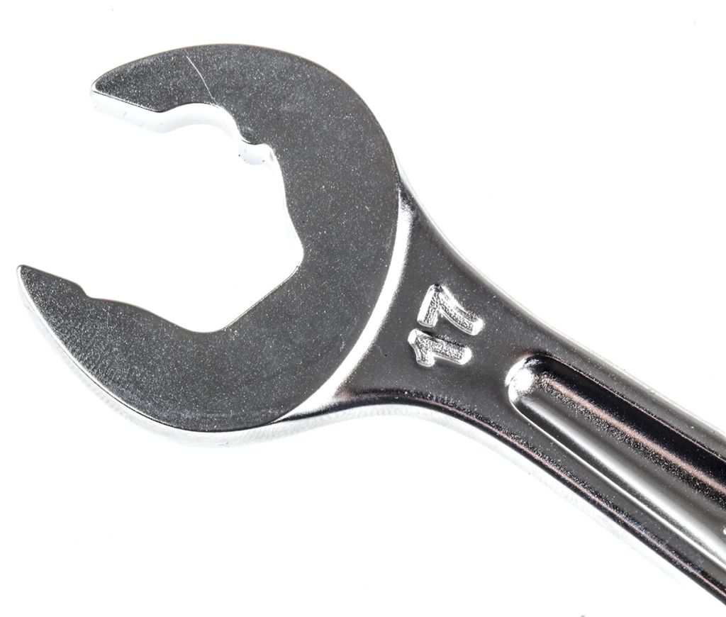 The combination ratchet spanner is made from chrome vanadium. Chrome vanadium is structurally strong, and its toughness enables it to withstand high fatigue and wear. It also has the added benefit of being resistant to corrosion and oxidisation, improving the life of the tool.