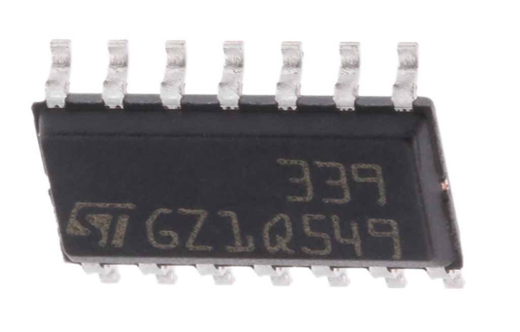 | Product description | LM339D STMicroelectronics, Quad Comparator, CMOS/TTL O/P, O/P, 1.3μs 2 → 36 V 14-Pin SOIC |