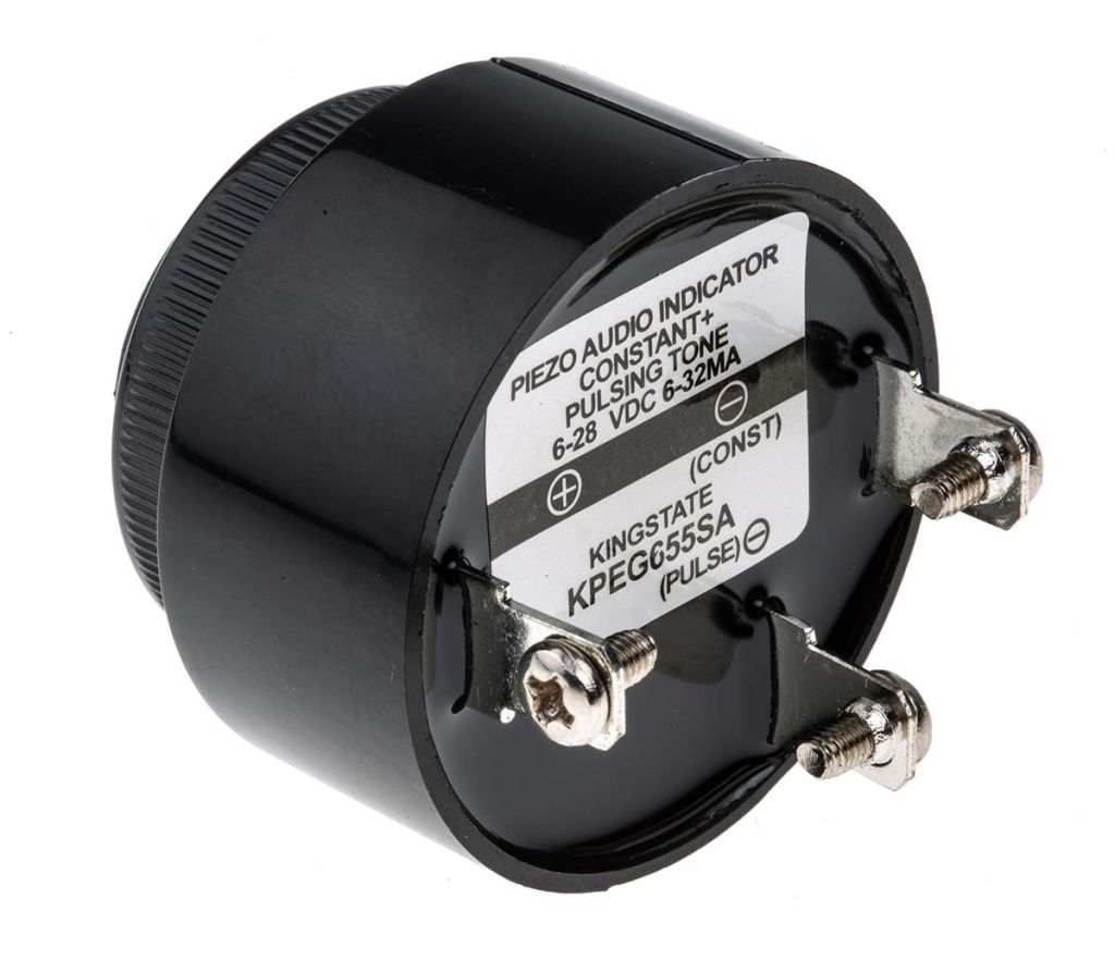 | Product description | RS PRO 92dB, Panel Mount Continuous, Fast Pulse Internal, Buzzer, 6V dc up to 28V dc |