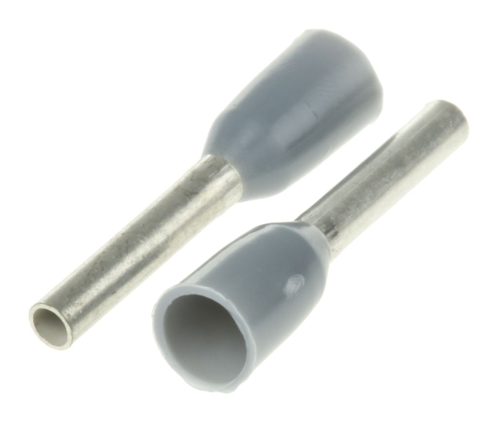 | Product description | TE Connectivity Insulated Crimp Bootlace Ferrule, 8mm Pin Length, 1.2mm Pin Diameter, 0.75mm² Wire Size, Grey |