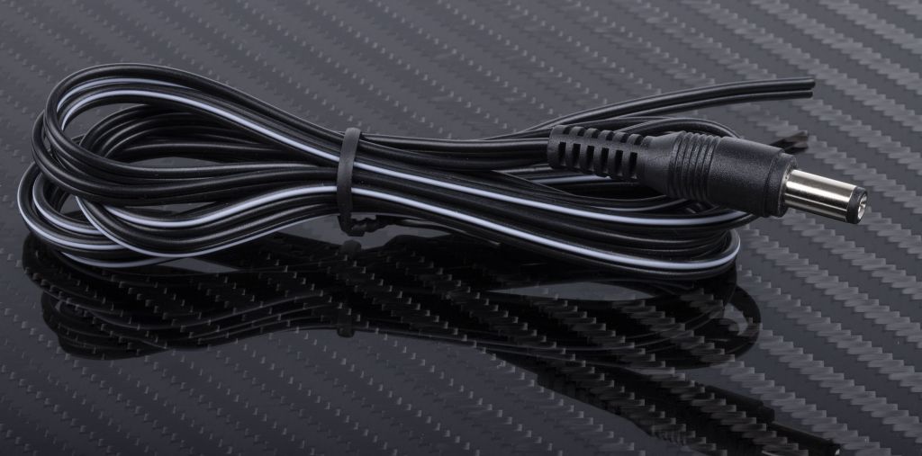 A DC power cable assembly sometimes referred to as a DC power cord, is an electrical cable used to make a connection between two DC devices or a DC appliance to a DC power source such as a power supply. The cable assembly is terminated at both ends with a DC power connector which can be a plug or a socket (these are sometimes referred to as barrel connectors). One end of the cable is connected to the DC power source and the other end is connected to the equipment that needs to be powered. These plugs or sockets usually have a straight or right angle orientation to allow for design flexibility. This DC power lead cable has a connector at just one end with bare wires at the other. The advantage of this is that one end of the cable to be soldered directly into the equipment which allows for custom installations
