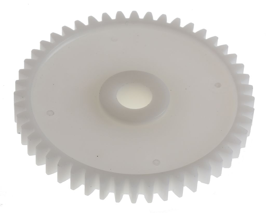 Injection moulded acetal copolymer spur gears providing a wide range of gear ratios.
