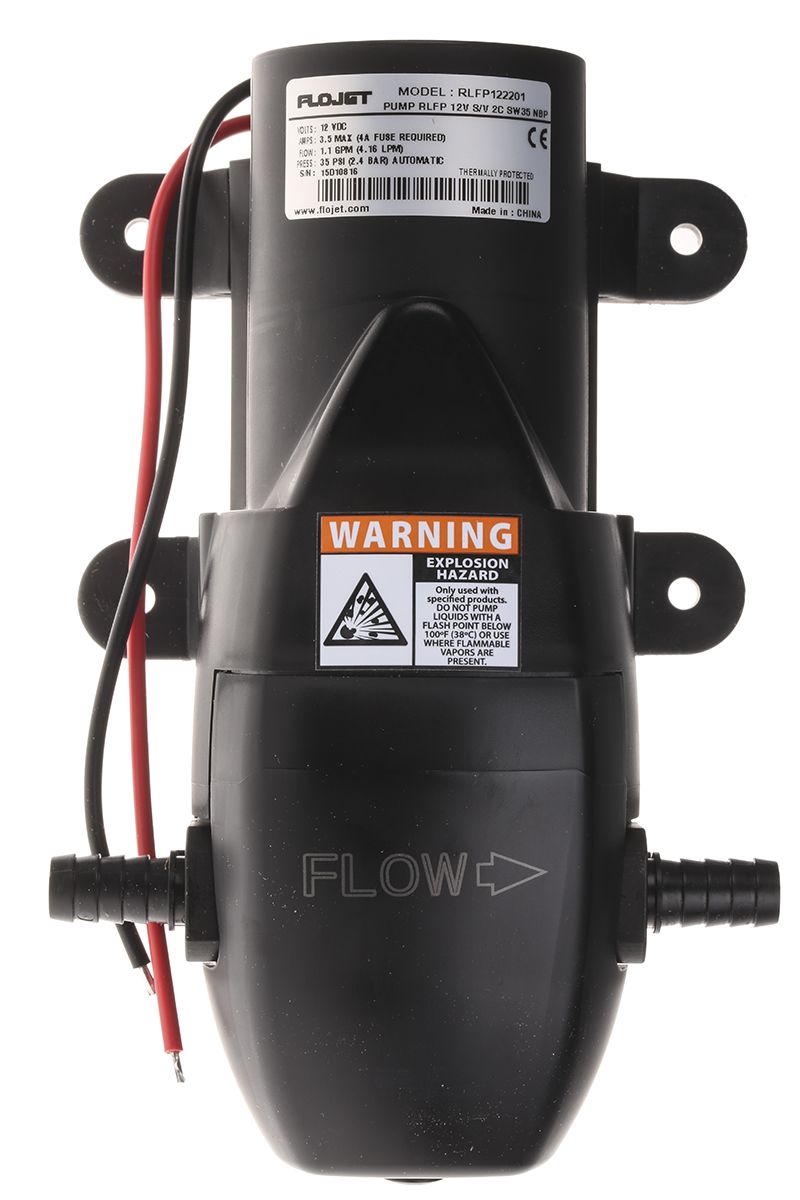 | Product description | Xylem Flojet Diaphragm Electric Operated Positive Displacement Pump, 3.8L/min, 2.5 bar, 12 V dc |