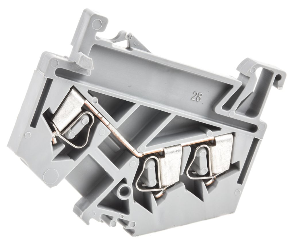 Compact screwless DIN rail mount terminals suitable for use with TS35 ’Top Hat’ rails. The compact size of the terminal is possible due to the new cage clamp designed to satisfy the need to reduce cabinet space on site.