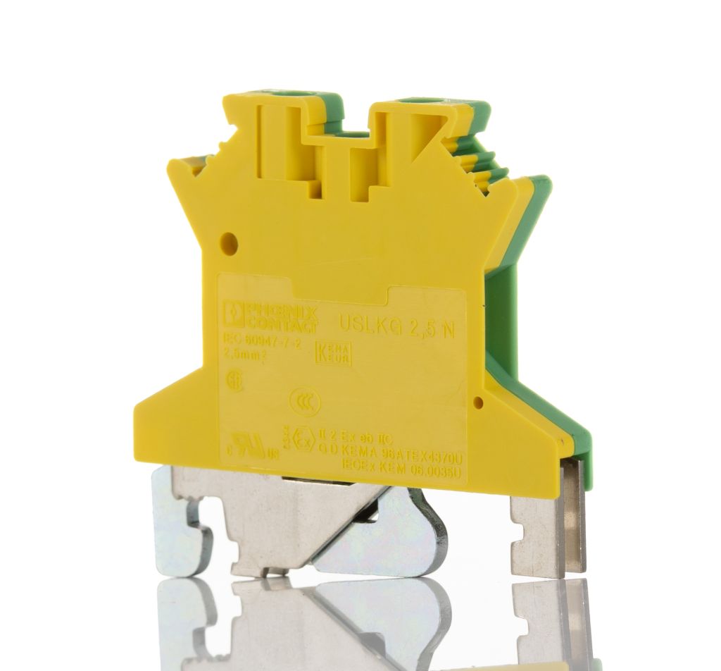 The Phoenix Contact USLKG series of Earth block offers you reliable grounding for your earthing wires, increase protection for personnel and equipment from interference such as EMI. The USLKG series offers "Plug&Play" style DIN rail mounting, allowing you to easily interchange/modify the set up of your earth blocks. The USLKG series performs well in different environments and has a good operating temperature range.