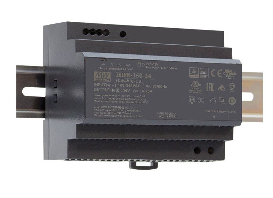 | Product description | Mean Well HDR-150 DIN Rail Power Supply 85 → 264V ac Input, 24V dc Output, 6.25A 150W |