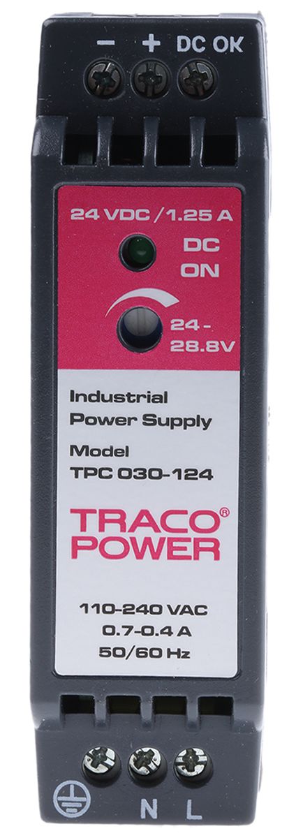 | Product description | TRACOPOWER TPC DIN Rail Power Supply 85 → 264V ac Input, 24V dc Output, 1.25A 30W |