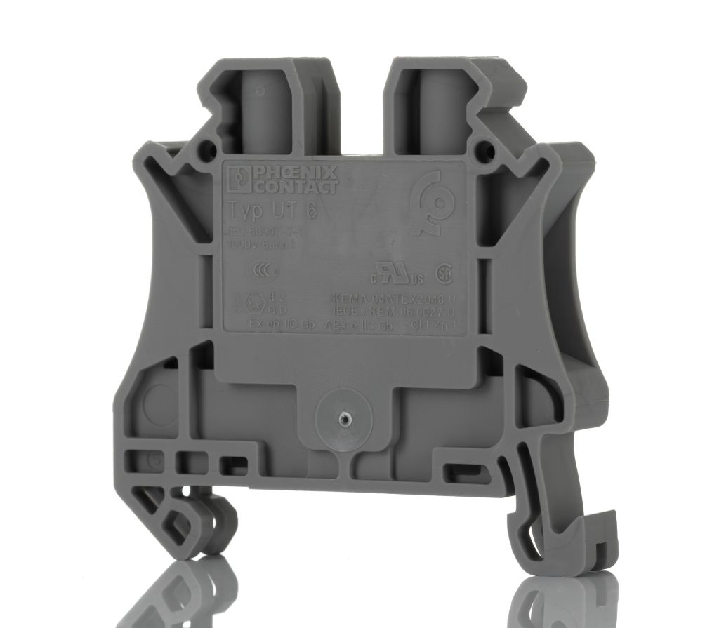 | Product description | Phoenix Contact Grey UT 6 Feed Through Terminal Block, 24 → 8 AWG, 0.2 → 10mm², ATEX, 1 kV |