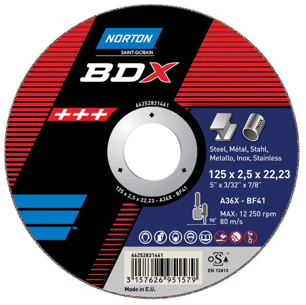 | Product description | Norton Cutting Disc Aluminium Oxide Cutting Disc, 180mm x 3.2mm Thick, P24 Grit, BDX, 5 in pack |
