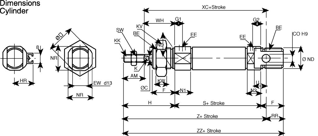 SMC C85 cylinders conform to ISO 6432 and CETOP RP52P standards, offer 100% mounting repeatability accuracy, incorporate abrasion-resistant seals, and a replaceable piston rod seal. The cylinders are corrosion-resistant, with the barrel and piston rod manufactured from stainless steel, double-swaged anodised aluminium end caps, and offer an exceptional service life. The double-swaged end caps provide an air tight seal. The cylinders offer high dust resistance through the use of a specially-designed and unique dust seal, making SMC C85 pneumatic cylinders suitable for use in extremely dusty environments. A low friction design that incorporates elastomer cushion seals allows the the cylinders to operate at speeds up to 1500 mm/s. C85 cylinders are suppied with a piston rod locknut and nose-mounting nut; installation is made easy through the use of large spanner flats and the space-saving design.