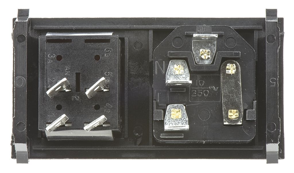 Product description Bulgin C14 Snap-In IEC Connector Male, 10A, 250 V, Fuse Size 5 x 20mm