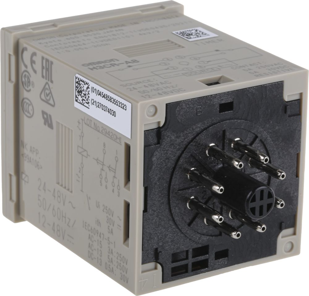 | Product description | Omron Multi Function Timer Relay, Flicker ON Start, Interval, ON Delay, One Shot, 12 → 48 V dc, 24 → 48V |