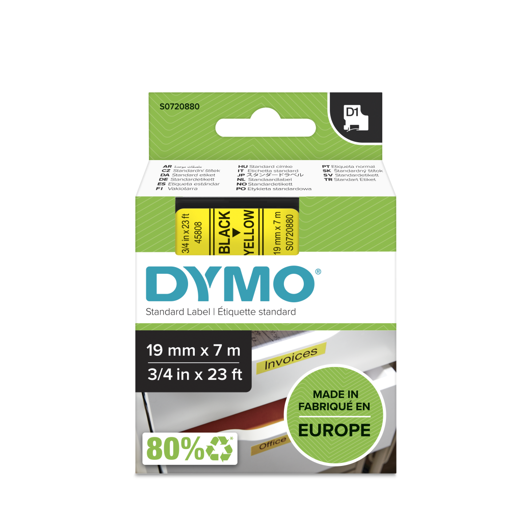 Dymo Black on Yellow Label Printer Tape, 19 mm Width, 7 m Length