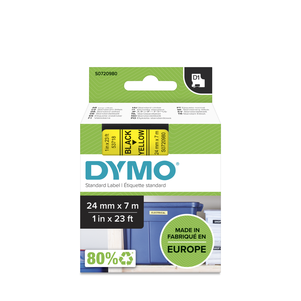 | Product description | Dymo Black on Yellow Label Printer Tape, 24 mm Width, 7 m Length |