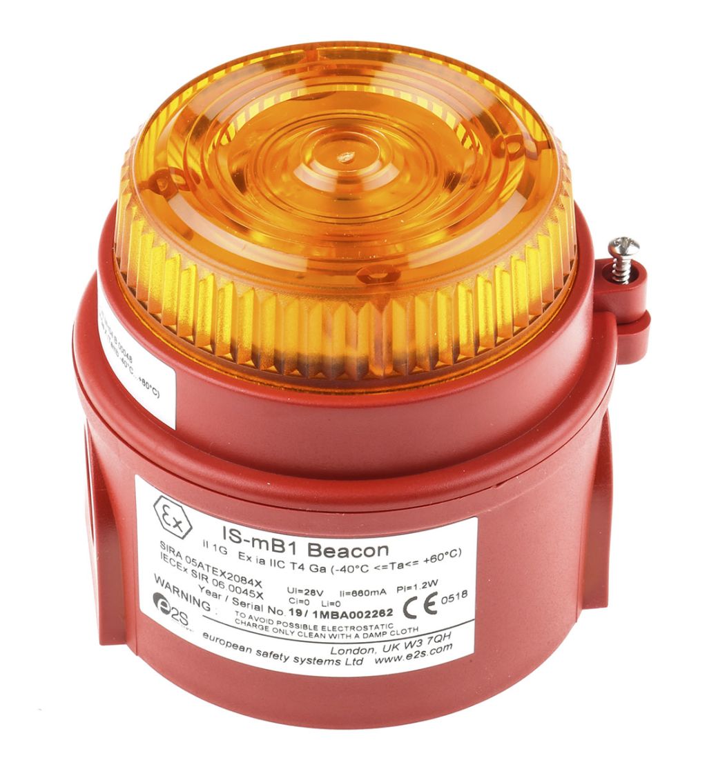 e2s IS-mB1 Amber LED Beacon, 24 V dc, Flashing, Surface Mount