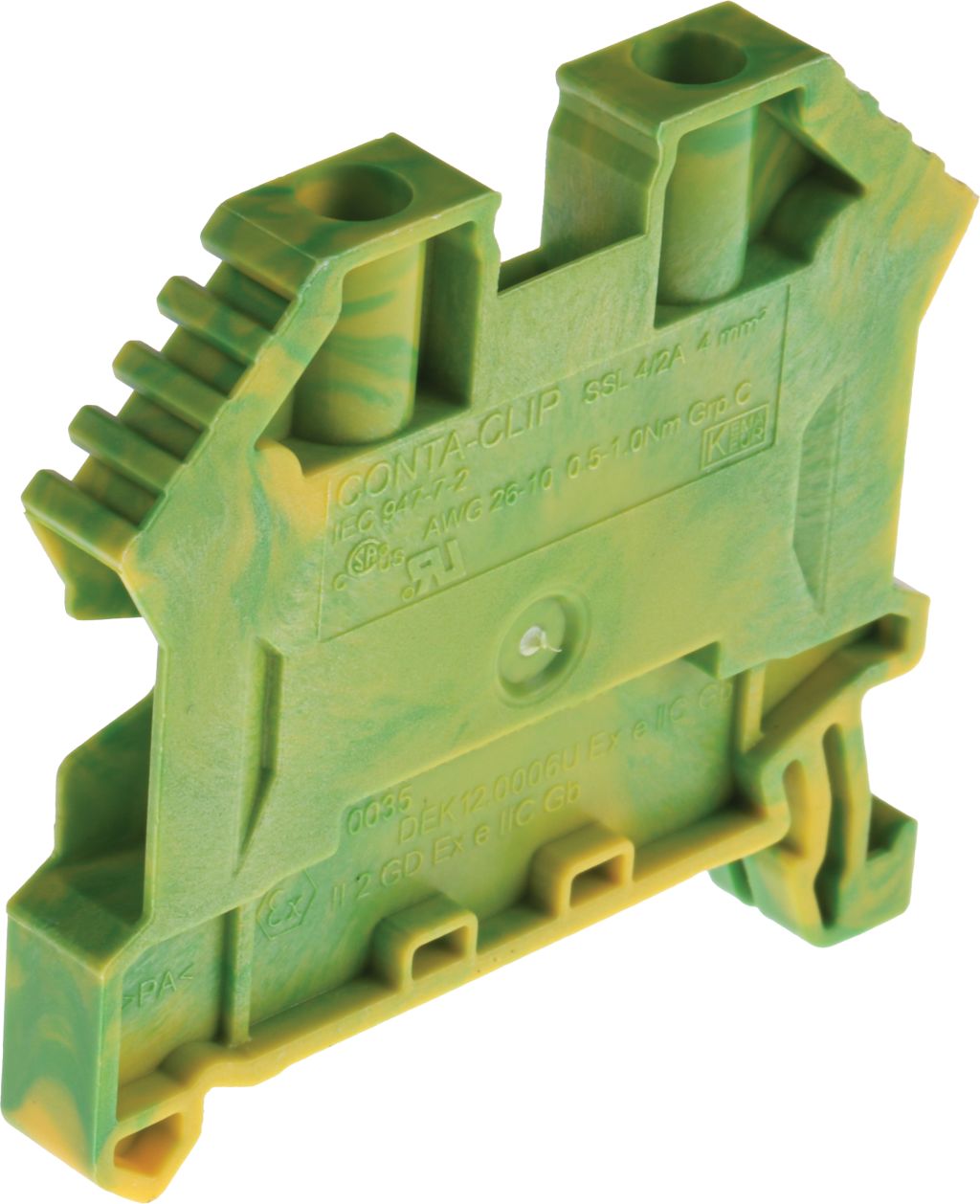 Product description RS PRO Green/Yellow Earth Terminal Block, 22 → 11 AWG, 4mm²