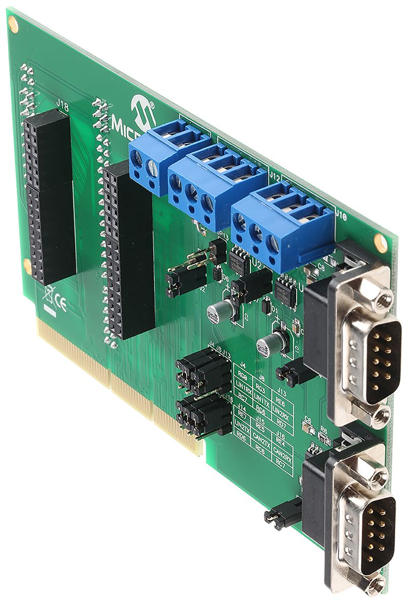 These boards facilitate rapid implementation and evaluation of applications that use Controller Area Network (CAN) and Local Interconnect Network (LIN) interfaces and are implemented on dsPIC33F DSCs and PIC24 16-bit microcontrollers.,AC164130 supports connection to the Explorer 16 Development Board only.,AC164130-2 supports connection to the Explorer 16 Development Board or the PIC18 Explorer Board.