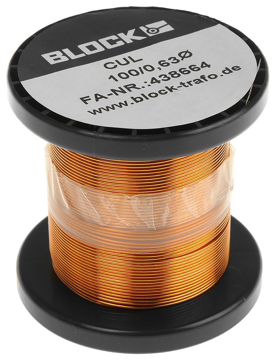From Block, a range of enamelled copper wire supplied on plastic spools. The single strand copper wire features a thin covering of enamel which acts as great insulation ensuring good chemical and thermal resistance. The enamel coating also prevents shorting. Enamelled copper wire or magnet wire is particularly useful for the production of tight coils. Block insulated copper wire is available in various diameters, AWG (American Wire Gauge) sizes and current ratings.