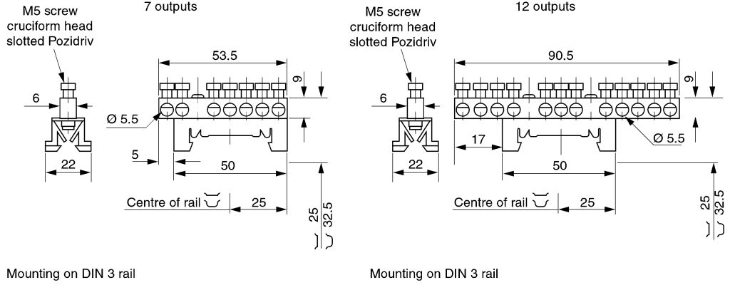 A simple easy to use system of DIN 3 rail mounting ground and neutral bars for panel or box assemblies, colour coded in green (ground) and blue (neutral) to ease identification.