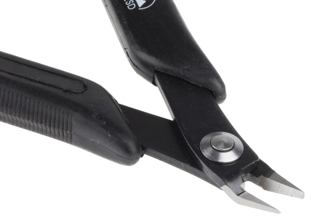 RS PRO professional ESD safe Side Cutters constructed from high carbon steel for strength and durability. These cutters have been designed to cut copper wire below 1.3 mm in diameter and are fully ESD compliant for safe use on sensitive electronic components.