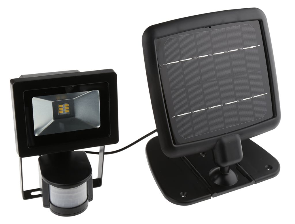The Solar Centre Evo SMD Solar security light features the latest solar technology in a traditional security light system. This floodlight can be installed virtually anywhere, as it doesn’t need mains power supply, still delivering mains equivalent brightness. The Evo SMD security light is powered by a safe low voltage power pack housed within the light, it has a powerful solar panel, connected with a 5 metres cable, which charges the high capacity battery during the day. The floodlight illuminates when it detects motion at night, just like any regular mains powered security lights. The Evo SMD is very easy to install compared to standard security lights. This Solar Centre floodlight features 3 settings: LUX setting to regulate the level of darkness that the Evo SMD will need before it detects motion; SENS setting to set the range of motion from 2m to 12m; TIME to set how long the Evo SMD will stay on for, once it detects motion, from 10 seconds to 9 minutes.