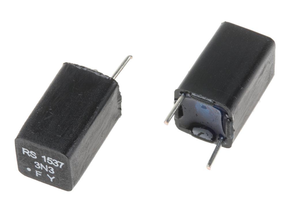 Product description RS PRO Polystyrene Film Capacitor, 63V dc, ±1%, 3.3nF, Through Hole