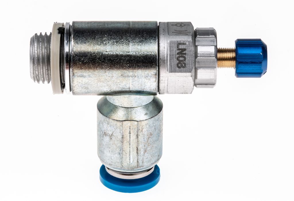 Flow control valves automatically adjust to variations in pressure and temperature in order to regulate speed, which is done through restrictions on the flow rate of compressed air. With a one-way flow control valve, the flow control function only works in one direction.