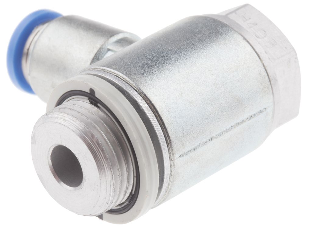 - The QS push-in fittings and captive seals paired with the robust, metal design enables a reliable and efficient installation that can be rotated or swivelled through a 360° axis