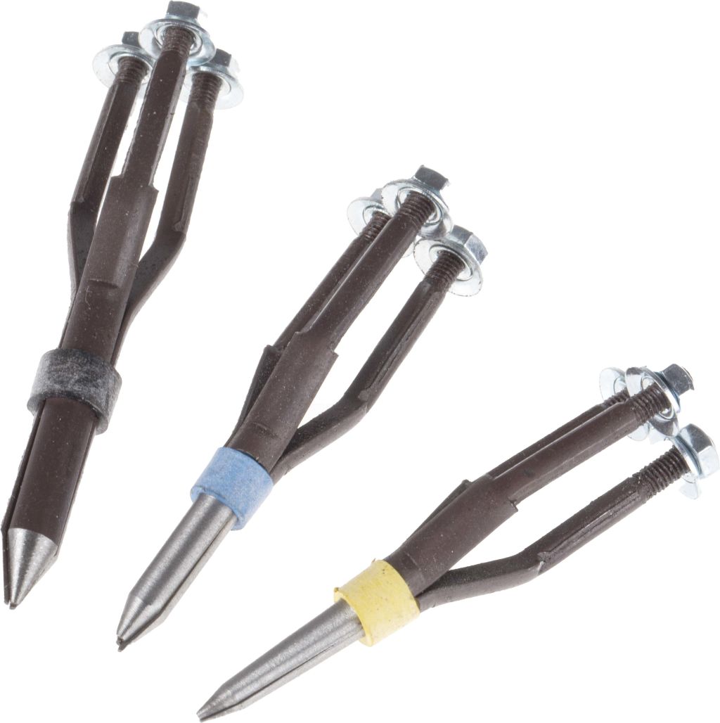 A choice of application tools for use with expandable sleeves. The fixed prong tool (548-243) is suitable for use with sleeves of diameter up to 2.0 mm, and the interchangeable prong tool (548-259) for sleeves of diameter up to 11.5 mm. The interchangeable prong tool is supplied with three sets of prongs (one set of type 1, 2 and 3 prongs) and an assembly aid.