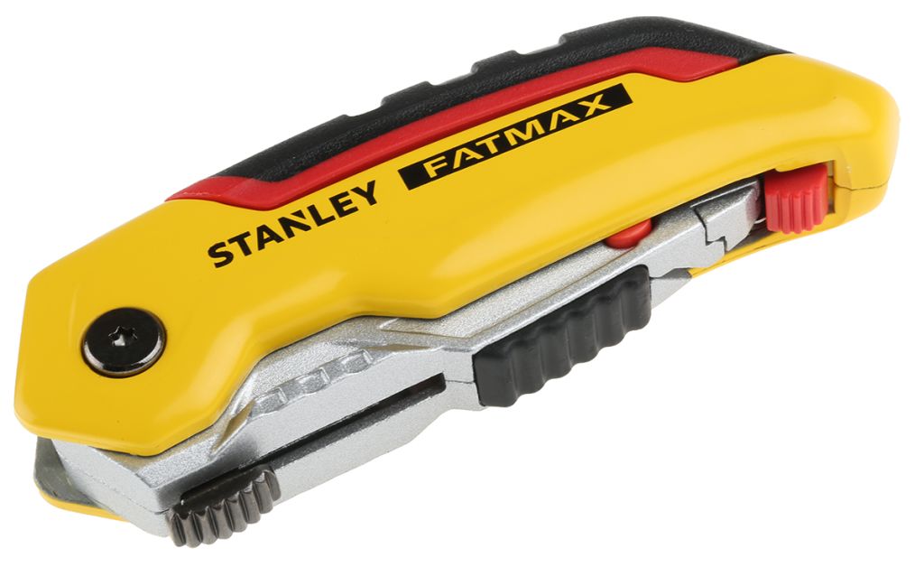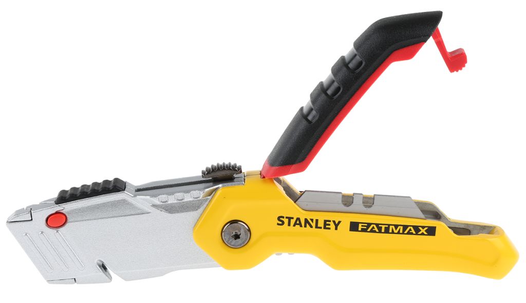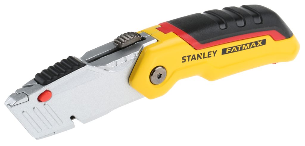 Introducing the excellent quality Stanley Fatmax Folding Retractable Blade Knife that has been designed with a professional, heavy-duty application in mind. Full metal body construction and ergonomically designed handle with a thumb pad guarantee comfortable and safe operation. No additional tools are required to change the blade thanks to quick blade change feature. Also, spare blades can be stored conveniently within the handle of the knife.