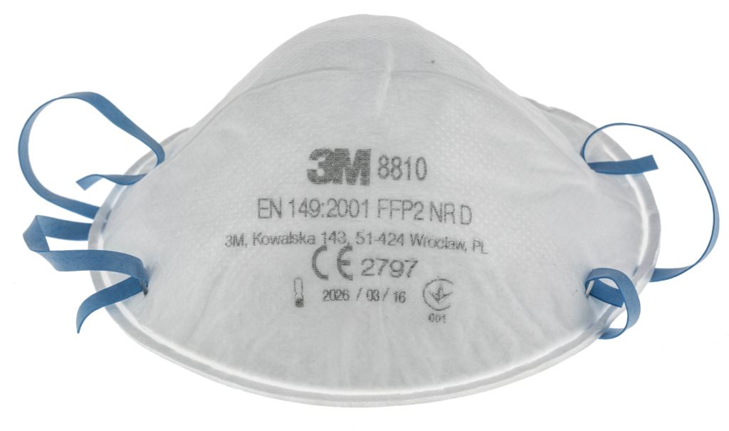 Get protection against hazardous dusts and mists with 3M™ Particulate Respirator 8810. Tried and tested for over 40 years, our classic, cup shaped disposable respirator provides secure and comfortable FFP2 (NPF 12) protection against dusts and mists.