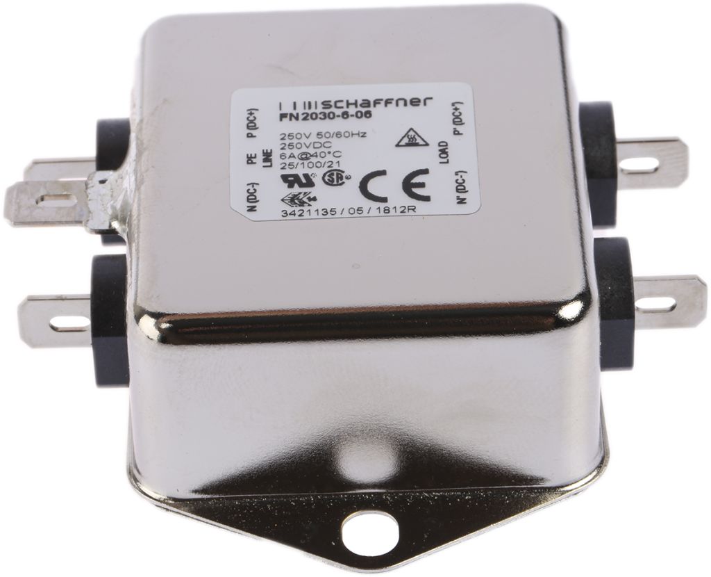 | Product description | Schaffner, FN2030 6A 250 V ac 400Hz, Chassis Mount RFI Filter, Tab, Single Phase |