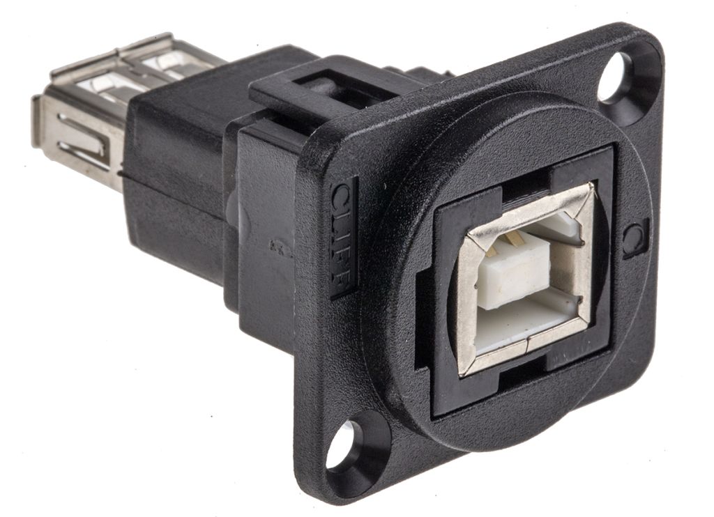 • Stock No. 898-7605 is a USB 2.0 A to B Feedthrough Connector