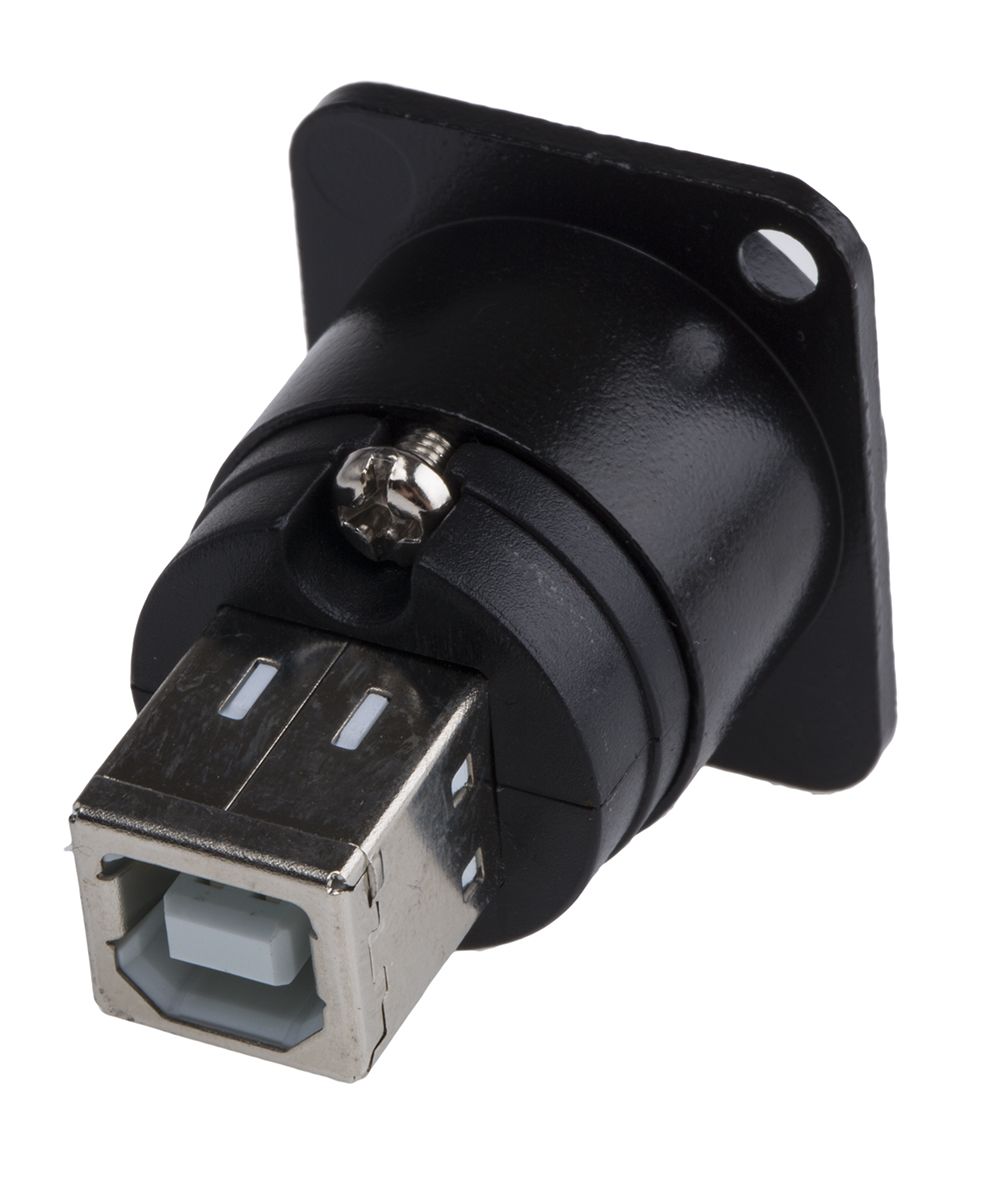 A range of RS Pro USB gender changer sockets in rugged XLR housings. The USB connectors convert from USB 2 A to B or USB 2 B to A. Designed to accommodate USB2 data feeds into professional broadcasting, audio and lighting applications. Housings are constructed from nickel plated zinc and are available in self-coloured or black options. Suitable for front or rear panel mounting.
