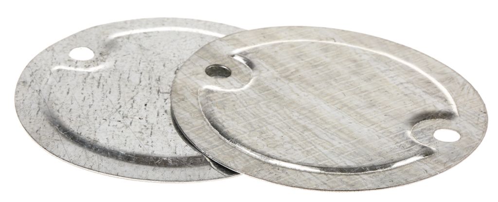 Black enamel or galvanised pressed steel light pattern lids and a black solid neoprene gasket for use with circular boxes in damp conditions