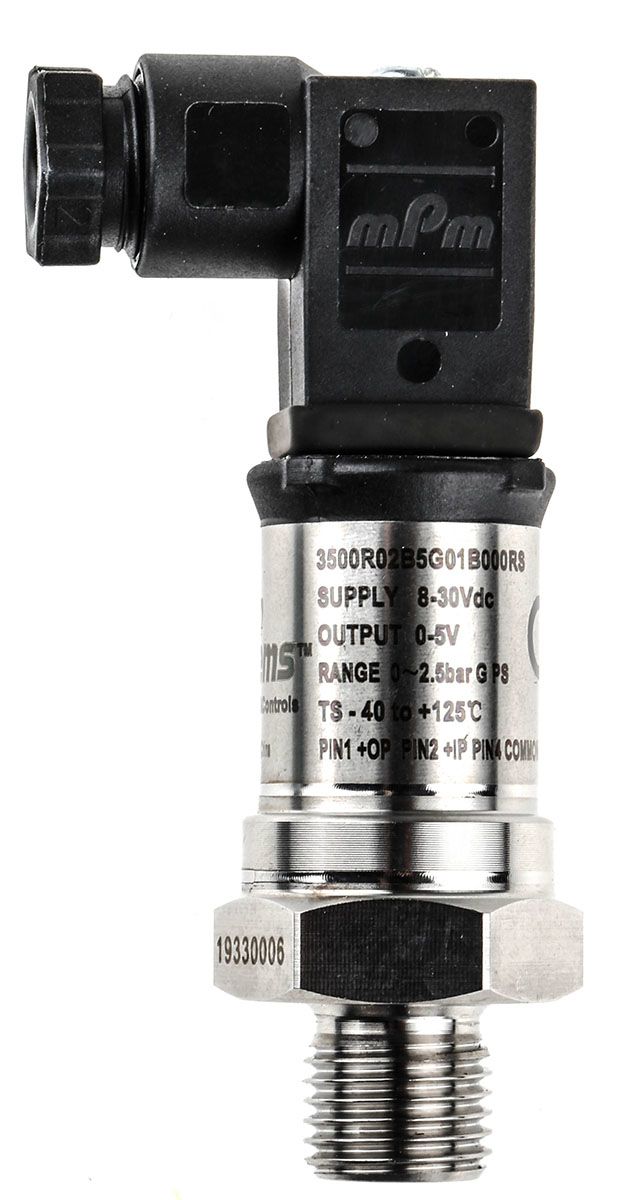 Product description Gems Sensors Relative Pressure Sensor for Air, Gas, Water, 2.5bar Max Pressure Reading, Voltage