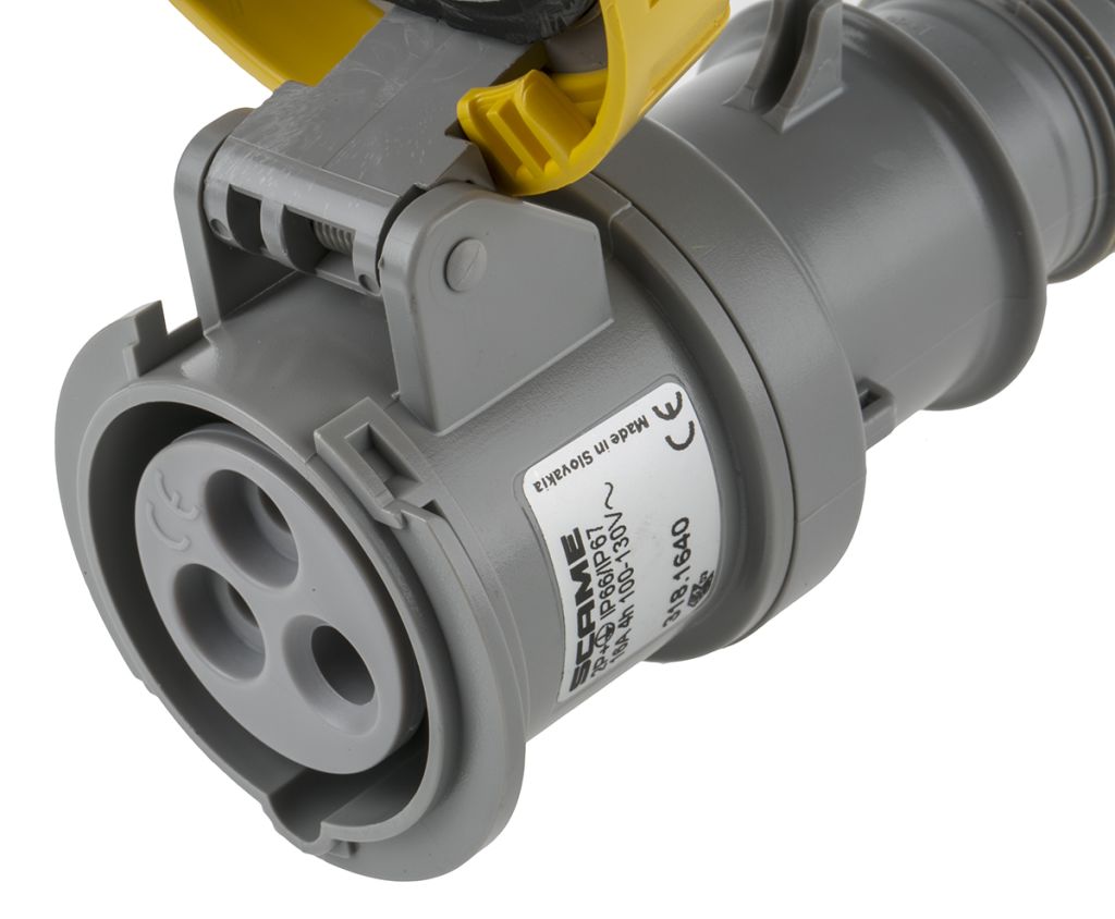 Scame IP66, IP67 Yellow Cable Mount 2P+E Industrial Power Socket, Rated At 16A, 110.0 V