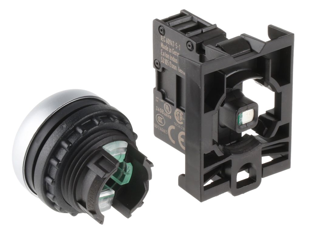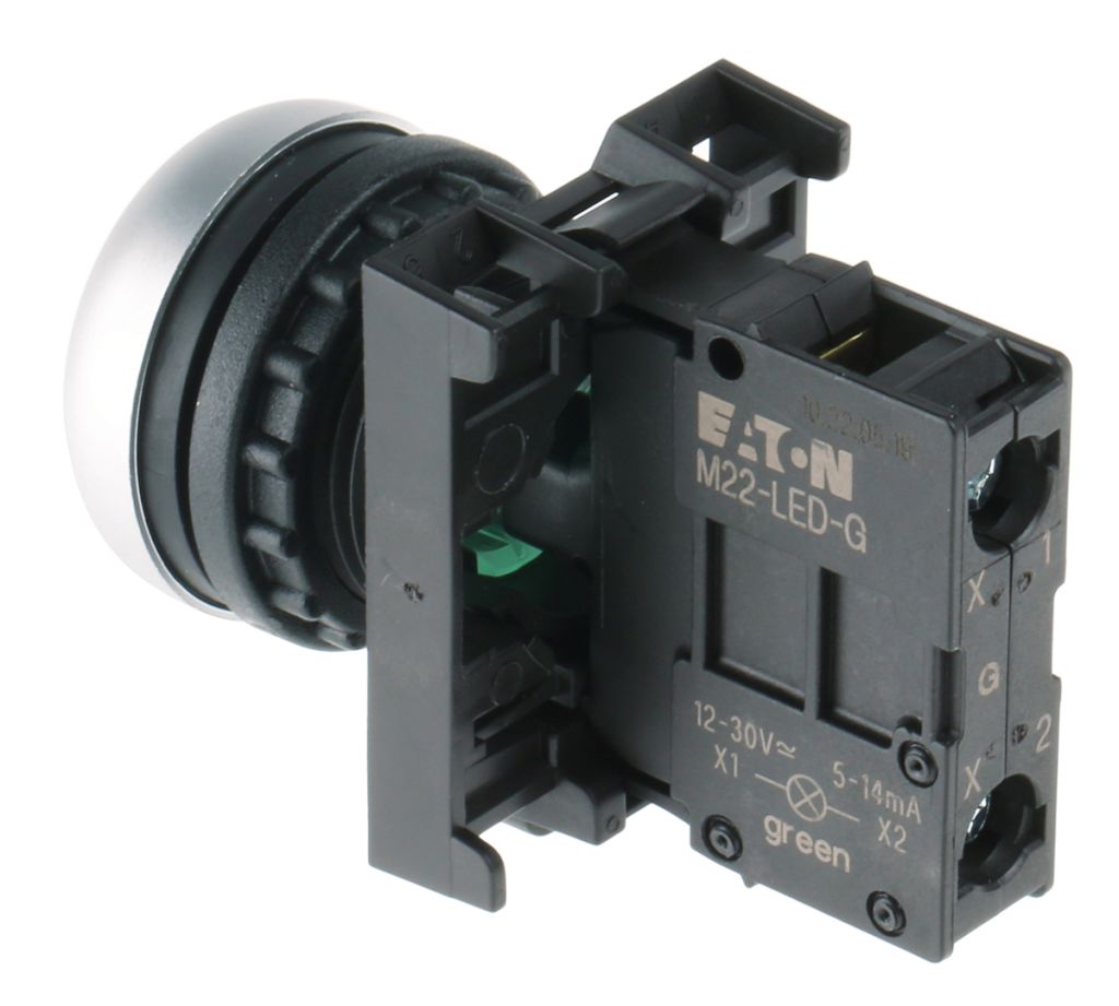 | Product description | Eaton Round Illuminated Green Push Button Head - Momentary, M22 Series, 22mm Cutout, Round |