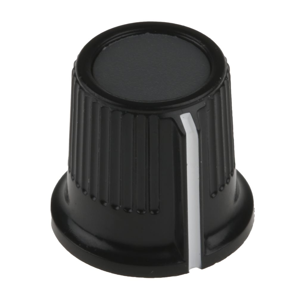 | Product description | RS PRO 16.2mm Black, Grey Potentiometer Knob for 6mm Shaft Splined |