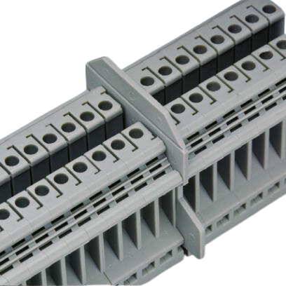 Universal terminals moulded in polyamide to fit both 'G' and 'Top Hat' rail.