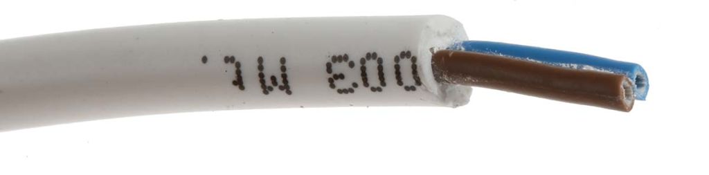 This flexible power cable consists of cores made up of fine IEC 60228 Class 5 stranded copper conductors or wires. Each individual core is surrounded by colour coded PVC (Polyvinyl Chloride) insulation for easy identification of the wires. Both the cores are then surrounded by a final outer layer of PVC called a sheath or jacket.