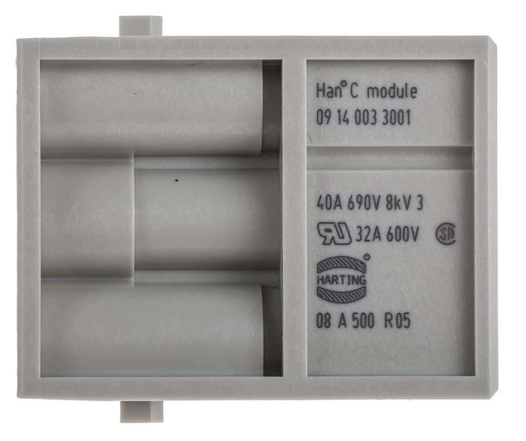 | Product description | HARTING Han-Modular Heavy Duty Power Connector Module, 3 contacts, 40A, Male |